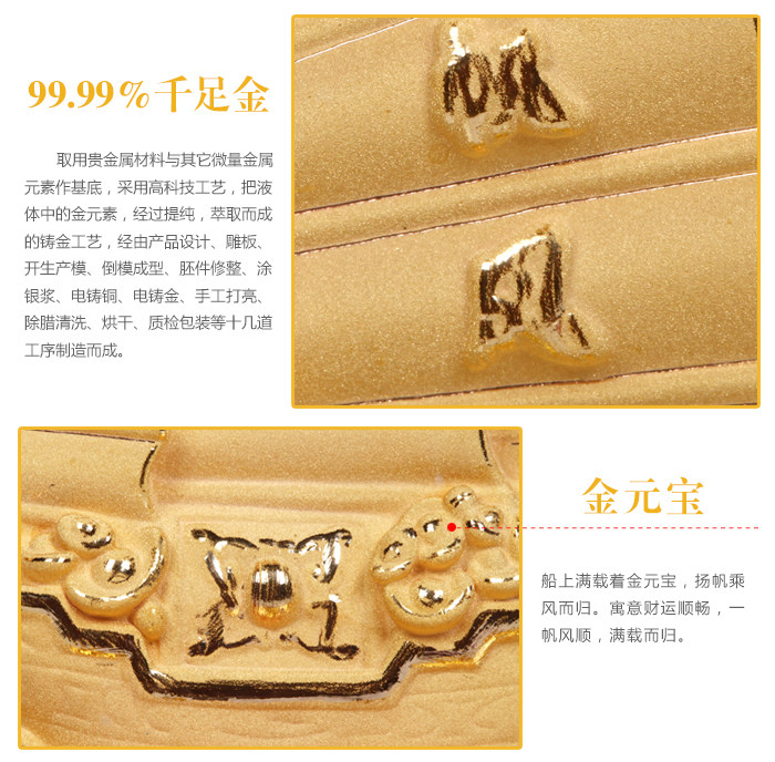 Decoration modelling for stereo, the inner layer is a hollow. Velvet sandsurface fine uniform, bright color inspection report for all products haveGuangdong Province (gold and silver jewelry test center to produce thesurface covering layer of gold content of gold: 99.99%).