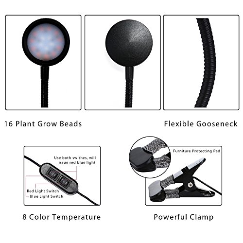 Umiwe LED Grow Light Clip On Plant Light Lamp Flexible Gooseneck for Indoor Plants Hydroponic Garden Greenhouse (Upgraded Version, 8W)