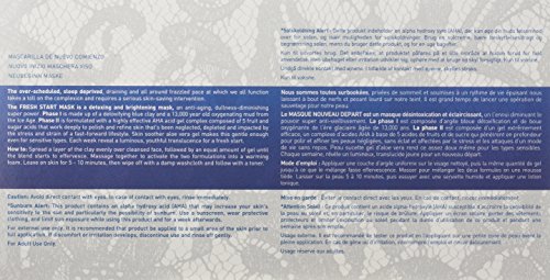 This two phase detoxing and brightening mask is an anti-aging, dullness-diminishing super power. Phase I is made up of blue clay and a 13,000 year old oxygenating mud from the Ice Age. Phase II is formulated with a highly effective AHA acid gel complex composed of 5 fruit and sugar acids that work deeply to detoxify and refine skin that's been neglected, depleted and impacted by the stress and strain of a fast-forward lifestyle. The clay phase goes on with a refreshing, cooling sensation and when blended together with the activating gel, it effervesces into a warming sensation that oxygenates, clarifies and smoothes the complexion in minutes. Blue clay, quarry-mined and mild, is a natural absorbent, drawing impurities from the skin while gently exfoliating. Ice Age Black Mud, formed 13,000 years ago and collected from fresh water lakes in Eastern Europe, is high in minerals, humic acids and lipids. It is highly oxygenating and increases cell turnover to leave skin feeling smooth and soft.Feature
