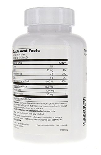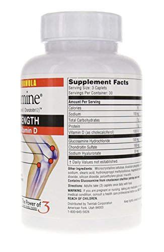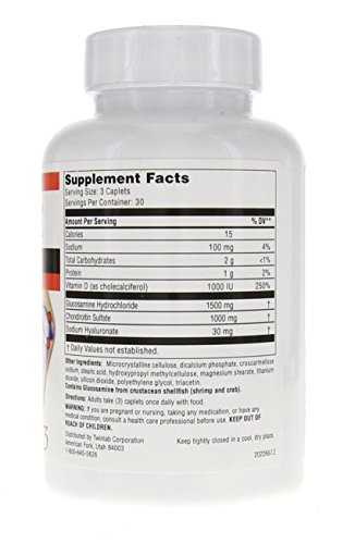 -. Feature : 90 Caplet Bottle / Contains Vitamin D, Contains Shellfish-Derived Materials / Glucosamine15 - Helps build and maintain healthy, protective cartilage and joints, and reduces joint discomfort. / Chondroitin12 - Promotes joint flexibility, lubrication, comfort and range of motion. / Hyaluronate13 - An essential building block in synovial or "joint fluid". This remarkable fluid helps to lubricate the joints allowing them to glide smoothly and comfortably over other parts of the joints.