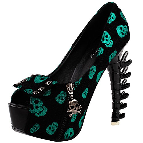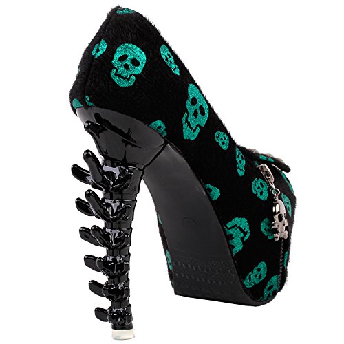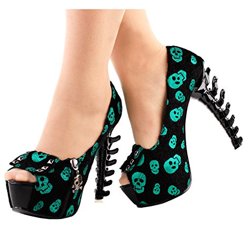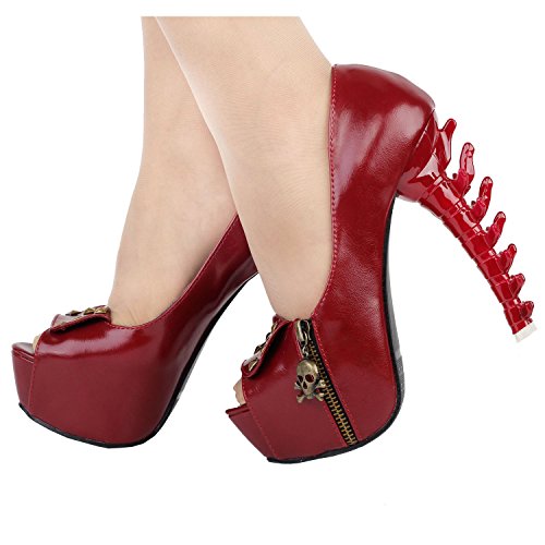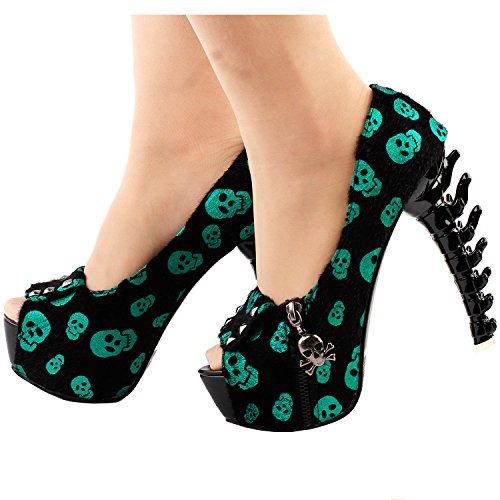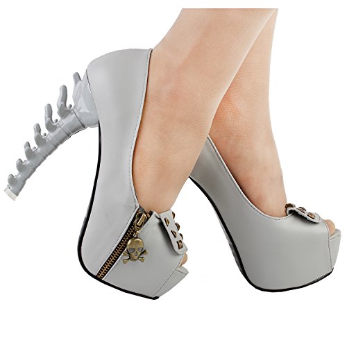 Show Story Womens Skull Zipper Peeptoe Platform Bone Heel Club Pumps,LF80624
