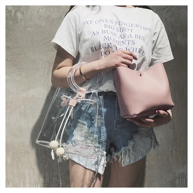 clear simple tote handbags:pvc tote shoulder bags