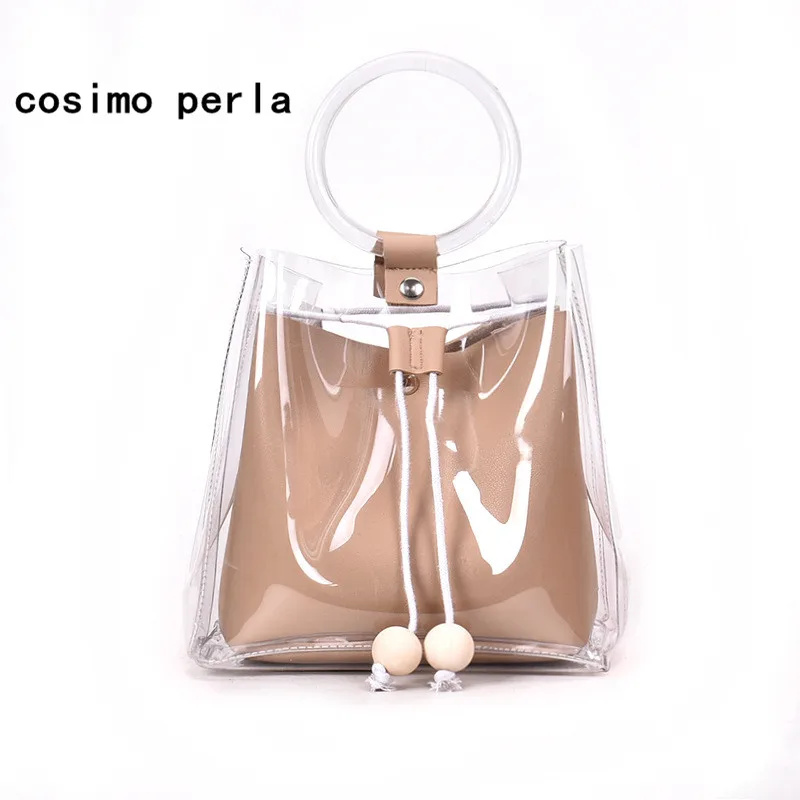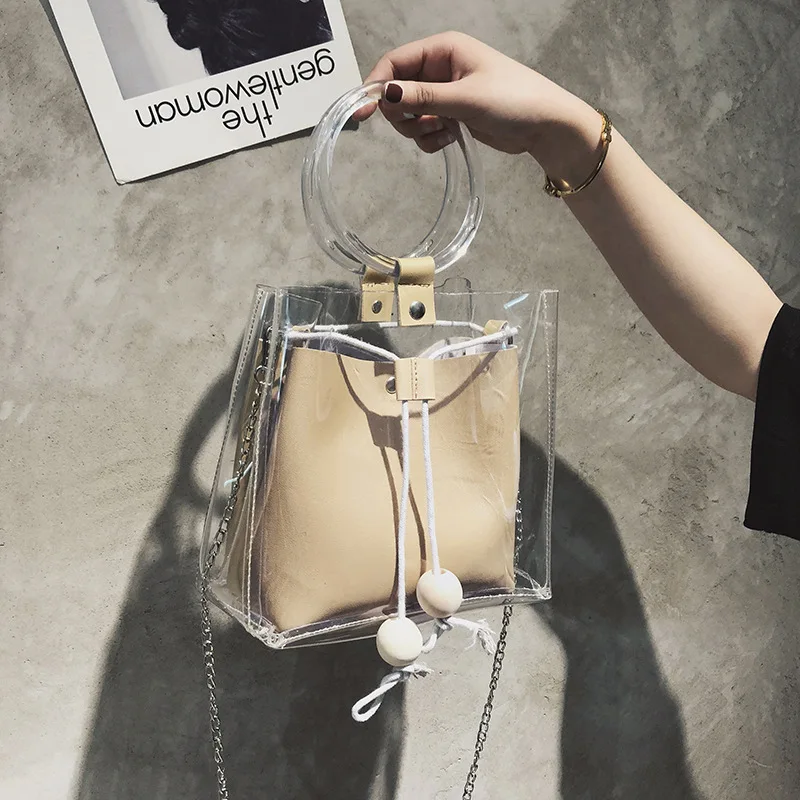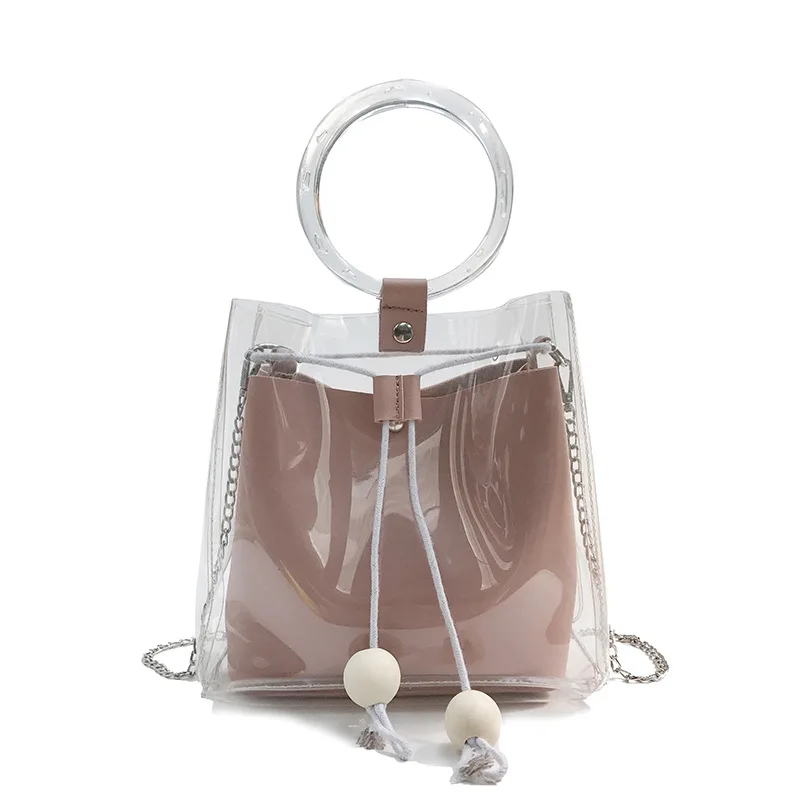 clear causal tote:round handle ladies handbag