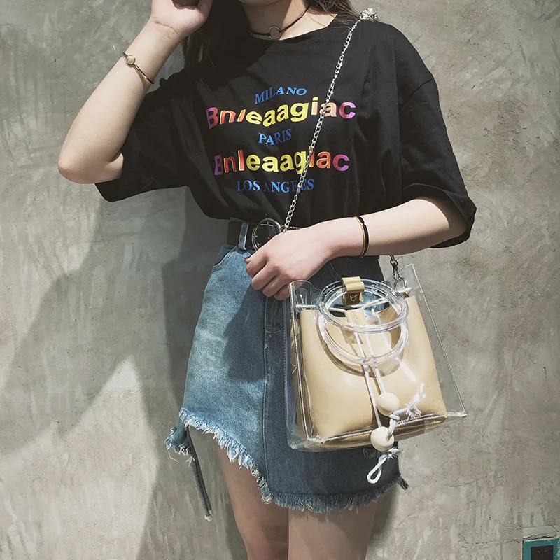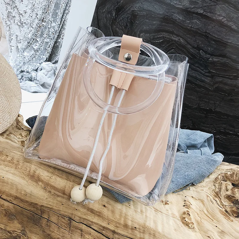 Jelly Clear Transparent Handbag:beach tote travel