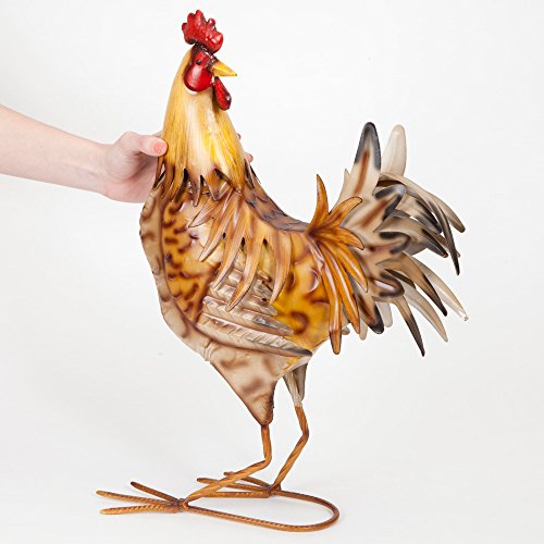 Hand crafted from metal (colors may very slightly), our majestic life-sized chicken sculpture is the perfect accent for your yard or garden.
