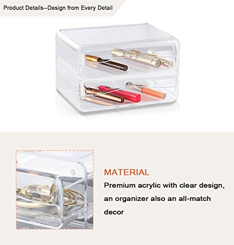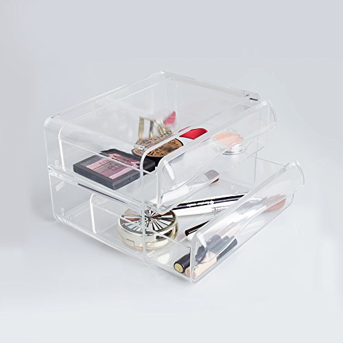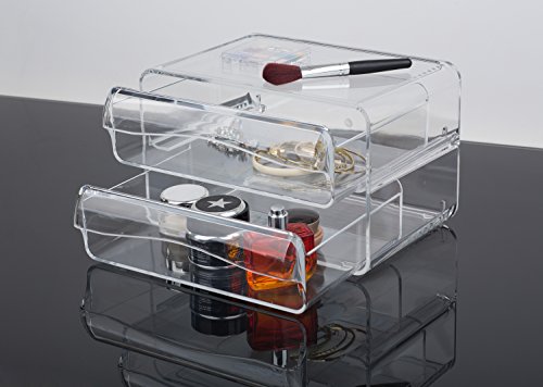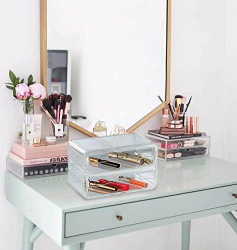 Acrylic 2 Drawer Organizer BUDGET & GOOD Makeup Cosmetic Organizer Storage Case for Jewelry Brushes Palette Lipstick Office Supplies - Clear