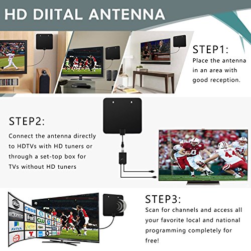 HD TV Antenna,Skyfind Indoor HDTV Antennas 50 Mile Range with Detachable Signal Booster and 10FT High Performance Coax Cable - Black