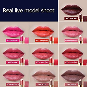Color:#01 Rose Red #02 Orange Red #03 Elegant Pink #04 Crimson #05 Cherry Red #06 Queen Red #07 Red Beans #08 Nude #09 Mocha #10 Wine red
