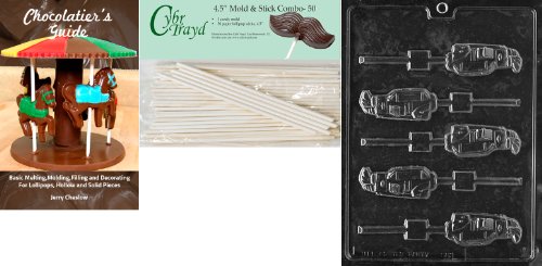 Cybrtrayd 45St50Bk-S083 'Golf Lolly' Sports Chocolate Candy Mold with 50 4.5-Inch Lollipop Sticks and Chocolatier's Guide