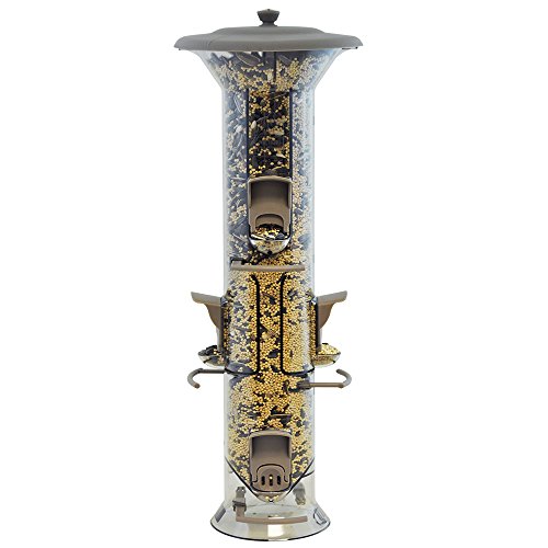 - Feature : 2 lb seed capacity. / Ports adjust to serve any seed. / Perches adjust to accommodate different sized birds. / Wide opening for easy filling. / Ships in custom / protective e-commerce packaging.