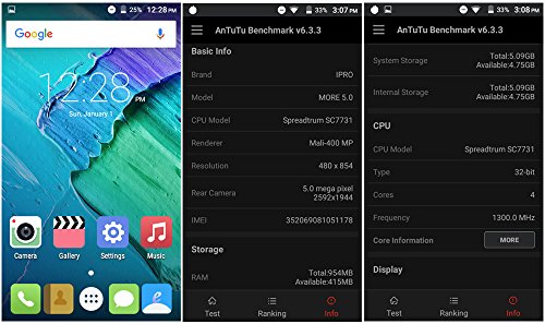 -. Feature : ☎ 5.0 inch Screen; 1GB RAM + 8GB ROM; Android 5.1 OS; 4000mAh Battery; Dual SIM Dual Standby; Support TF Slot; / ☎ Frequencies: Unlocked(quad-band) GSM cell phone compatible with (850/900/1800/1900) frequencies and (international) 3G compatibility via 850/1900/2100 UMTS/HSDPA plus GPRS/EDGE data capabilities. / ☎ Dual Camera(5M rear camera+2M front camera); 8GB ROM+1GB RAM Memory,external memory up to 32G; Multimedia capabilities: video player, game player,music player,FM radio etc. / ☎ Bluetooth connectivity (hands free) Wi-F, and GPS. 5 inch Big touch screen, covers functions of vrower,calculator,calendar,camera,clock,downloads,email receiving,file manager,FM radio, gallery ,google service, messages,music,contact,Sound recorder. / ☎ Provide and Sold by IPRO & Factory. With 1 year warranty!