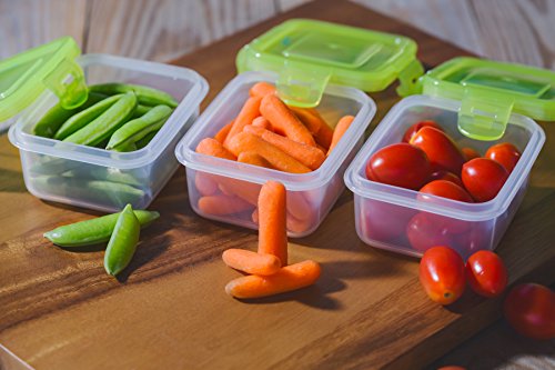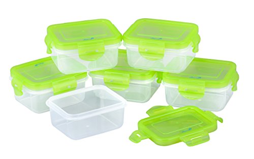 SET OF 6 PREMIUM BABY FOOD CONTAINERS: Premium quality small plastic storage containers are the perfect solution for storing baby food, kids snacks, or lunch box treats. Six (3/4 cup or 6 oz) reusable, lockable, airtight plastic food containers keep your young ones food and snacks fresher longer and are perfect for food storage, travel, freezing or microwaving.