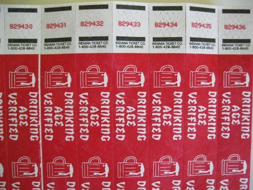 -. Binding : Office Product -. Brand : Indiana Ticket Company -. Feature : 100 Red Drinking Age Consecutively Numbered Tyvek Wristbands 3/4 inch / Waterproof,durable,great one time use / Made of Dupont-Tyvek materials -. Label : School House Cards -. Manufacturer : School House Cards -. MPN : RDAV100WB -. PackageQuantity : 1 -. PartNumber : RDAV100WB -. ProductGroup : Office Product -. ProductTypeName : OFFICE_PRODUCTS -. Publisher : School House Cards -. Studio : School House Cards -. Title : 100 Red Drinking Age Verified Consecutively Numbered Tyvek Wristbands
