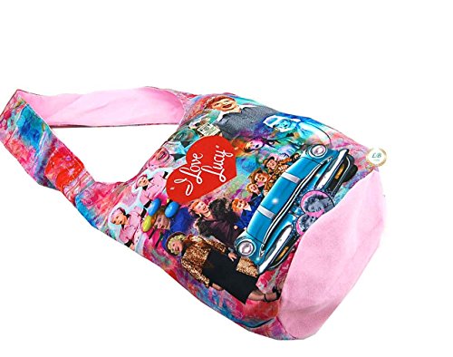 Product DescriptionI love Lucy sling bag is made of microfiber with top zip closure. An inside zip pocket. The size is 13(L) x 13(H) x 6(W) inches (Drop length 16 inches)0