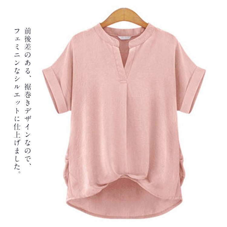 | フレンチスリーブなので、着やすく、OLな雰囲気を漂うTシャツです。スキッパーデザインのネックが女性らしさを引き立てます。前後差のある、裾巻きデザインなので、フェミニンなシルエットに仕上げました。普段使いから通勤のオフィスカジュアルまで幅広いコーディネートがが利くシンプルなアイテムです。 | |