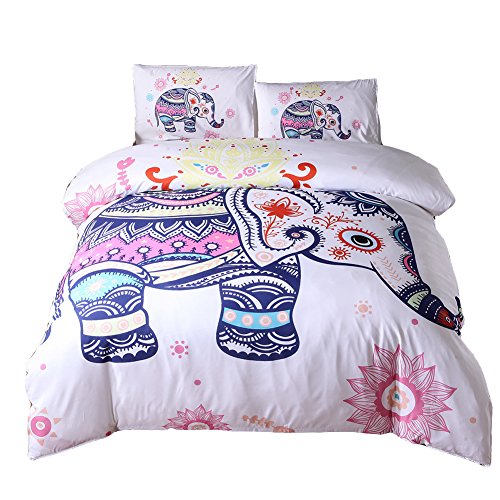 Moreover 3 Pieces Pink Elephant Duvet Covet Set Boho Bedding Cartoon Floral Elephant Pattern Design White and Pink Kids Bohemian Bedding Set (Queen, Lovely Elephant)