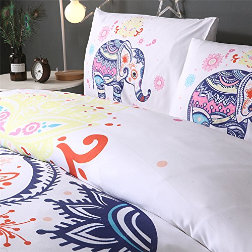 PATTERN:Duvet cover and matching pillow shams printed with elephants, which inspired by Mandala patterns, add a touch of eclectic style to your bedroom.