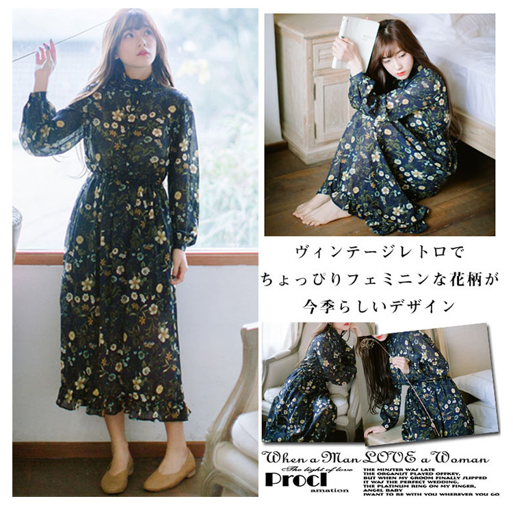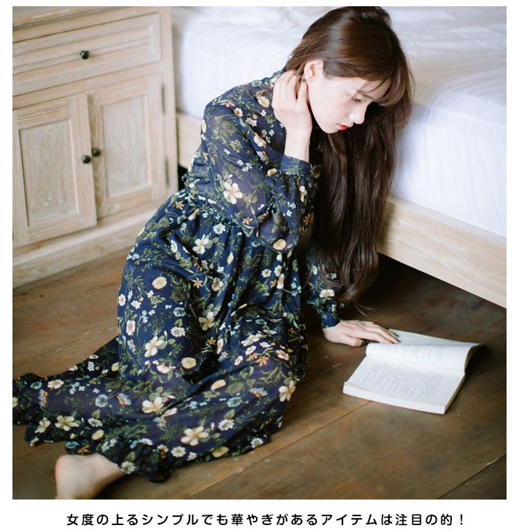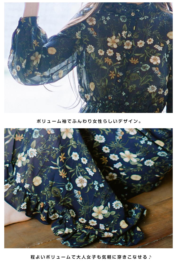 | ヴィンテージレトロでちょっぴりフェミニンな花柄が今季らしいデザイン。柔らかいシフォン素材だから、ふわっと揺れるエアリー感がとにかくキュート!ややハイウエストでお腹周りがスッキリ見え、脚長効果も抜群◎膝を隠すミモレ丈は大人の上品さを感じさせます。女度の上るシンプルでも華やぎがあるアイテムは注目の的! | |