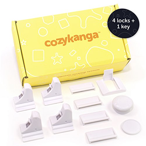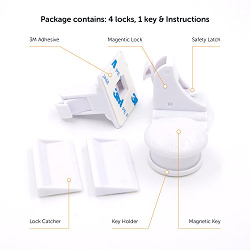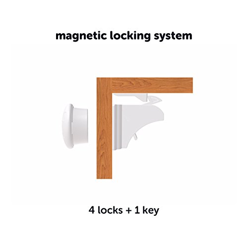 Magnetic Child Safety Locks | For Cabinets, Cupboards, Drawers and Doors | Baby Proof, Strong & Easy To Use | Tool Free Fitting (4 locks + 1 key)