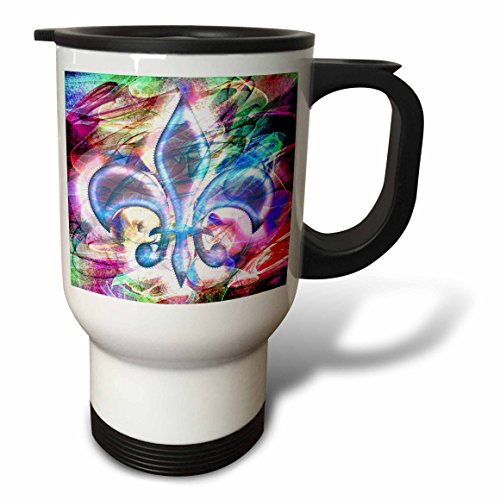 3dRose Fleur De Lis Abstract Art Travel Mug, 14-Ounce, Stainless Steel