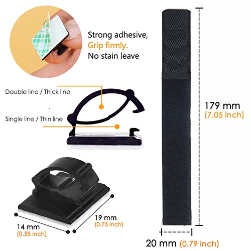 - 【Excellent size combination】Adhesive Wire clip size: 19 x 14 mm (0.75 inch x 0.55 inch), applicable cable diameter: 0 - 5 mm (0 - 0.2 inch). Fastening Velcro Strap size : 20 x 179 mm (0.79 inch x 7.05 inch), applicable for keeping all kinds of cords well organized and tidy in place.