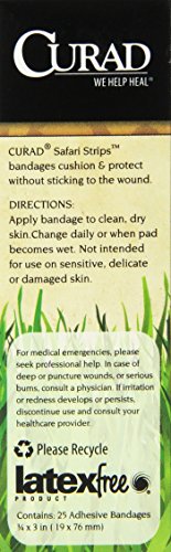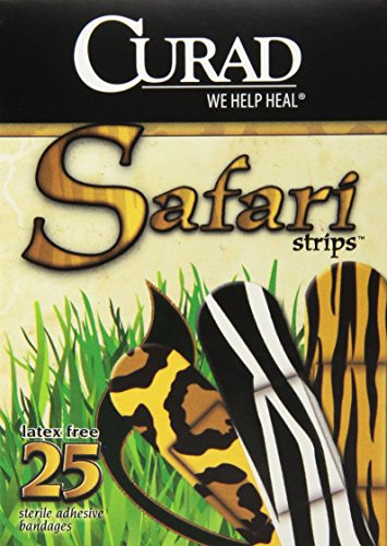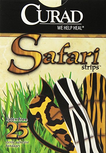 -. Feature : CURAD® Safari Strips are the perfect bandage for children of all ages. / The Zebra, Leopard and Tiger P.R.Int bandages keep your cuts and scrapes protected while showing off your wild side / 25 sterile, latex-free bandages / 3/4" x 3" (2 x 8 cm)