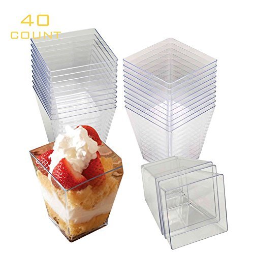 These Modern Style Clear Square Cups will give you a fun and unique ways to serve sides, desserts, soups, puddings, ice cream and so much more.You can decorate each cup with decorative foods. You can also create colorful layers of puddings and jello with a whipped cream topping.Feature