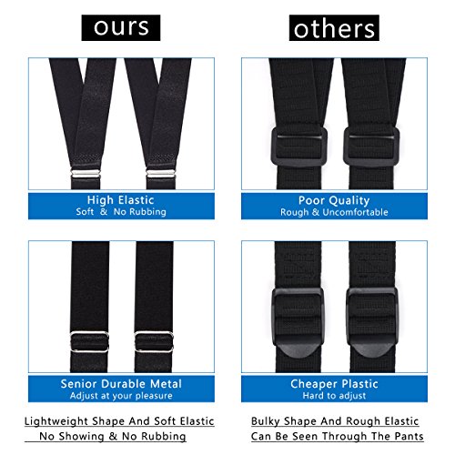 GradeCode Shirt Stays based on own factory, designed for all ages, is high quality guaranteed. So if you are searching for a premium, strong, durable and long lasting shirt stays,also protecting your clothes, our Shirt Stays are your Best choice! Unstretched length: 17.5"~27.5"/ 45cm~70cm, Width: 0.8"/ 2cm How to Wear? -Shirt stays connect the bottom of a dress shirt to the socks.Firstly, You'd better estimate the approximate length of you need,Then clip your socks with one clamp ,and clip tail of your shirt with another two clamps.Last, adjust the length of your real needs that keep your shirt tucked and make you feel comfortable. After fastening shirt stays on both legs, put on your trousers, you'll deserve the great look that shirt stays make. Tips: 1. Make sure the socks are at least on the mid-calf.2.Wash as little as possible, if you want to wash, Hand-wash recommended.3.Wipe off the water on the metal then drying out. 0 |