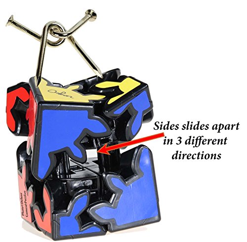 - Feature : Fantastic gear based twist and turn puzzle. Easy to mix up colors. / Objective: After thoroughly mixing colors return puzzle so there is a single color on each side and a perfect cube. / Puzzle halves actually pulls apart by about 1/2 inch making the twist action even more crazy. / Four gears on one side can turn independently when puzzles halves are pulled apart. Recommended for ages 10 to 105 years. / Bonus: Twisted Nails Puzzle. Separate and then rejoin the 2 carpenter's metal nails.