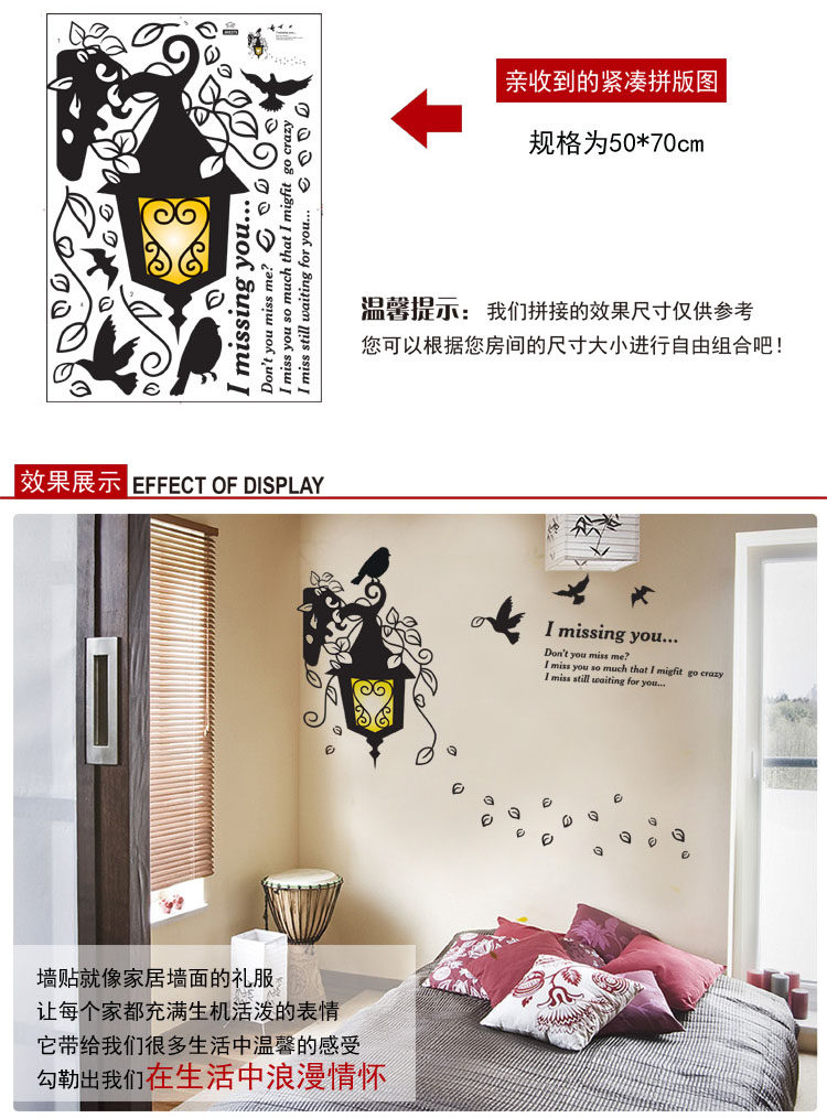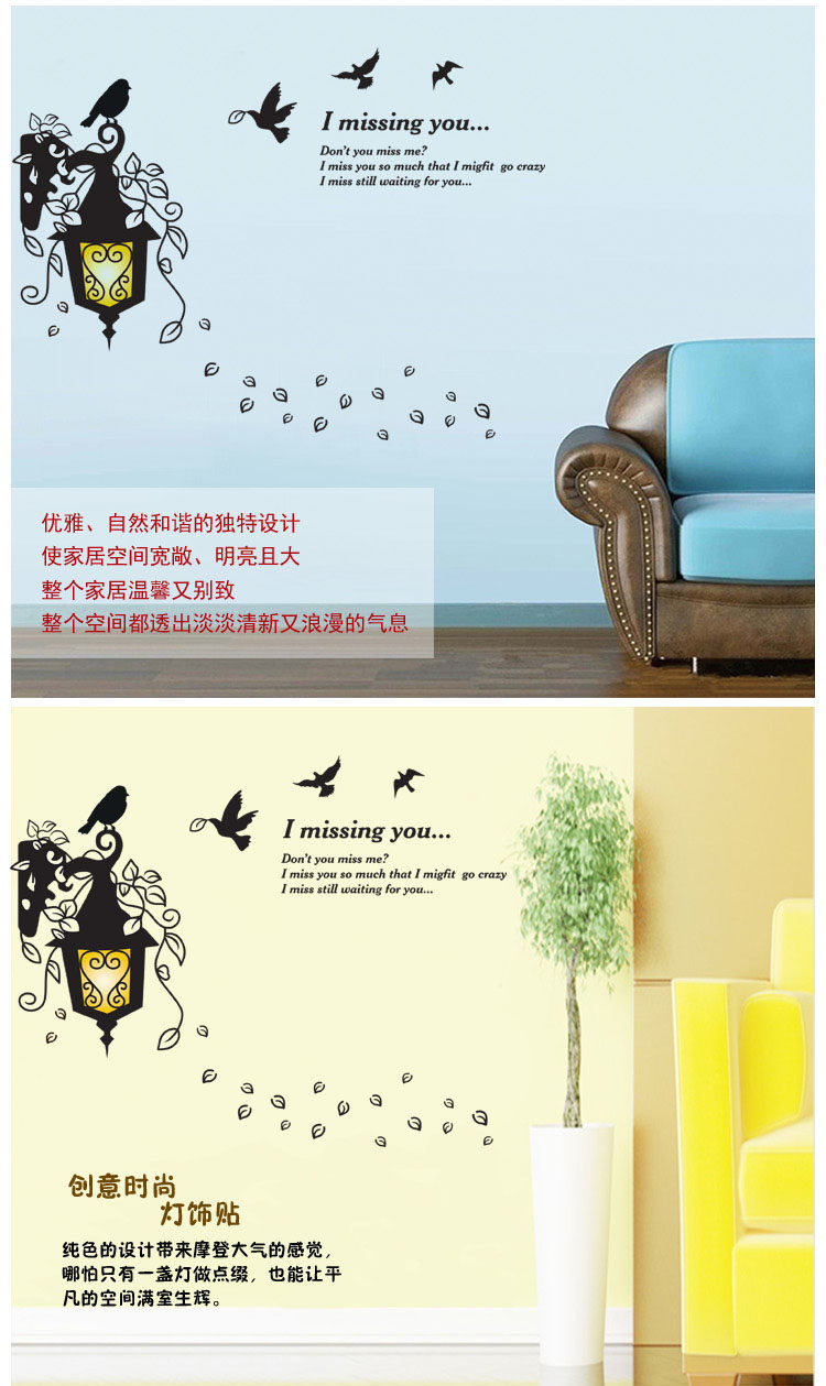 墙贴 玄关墙角装饰贴可移除贴纸宿舍橱窗布置角落壁贴欧式路灯
