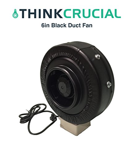Durable black Inline Fan, 6-Inch, Part # IF6; Perfect for Grow Rooms Cigarette Smoke, Foul Odor Emissions, Pet Dander, Plant Emissions, Allergenic Pollutants & More, by Think Crucial