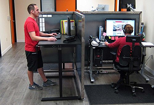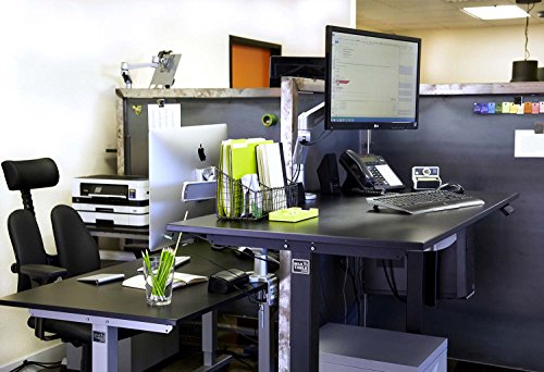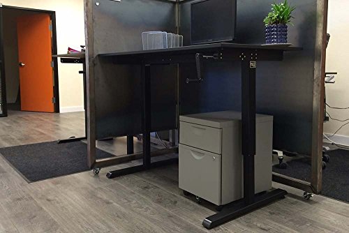 -. Feature : Smoothly raises and lowers from 28.25 inches to 47.75 inches / Handle folds under desk or can be removed completely / High Quality Rolled Stamped Steel for Superior Strength & Stability - Holds 130lbs / Beautiful Fine Powder Coat Finish for Maximum Durability / High Quality 3/4 inch Wilsonart® Thermally Fused Laminate Top (TFL)