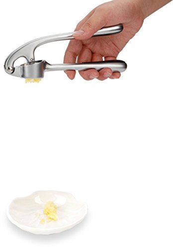 Renook Garlic Press comes with stainless steel peeler and brush set. It has a comfortable, ergonomic design that easily fits into your hand. Its stainless steel construction makes its sleek, visually appealing and long lasting. It is great for use at home or picnics.
