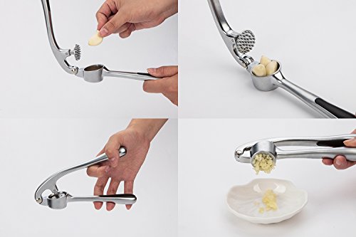 ♬Stainless Steel Garlic Press brings high-professional quality to your kitchen. It has proved itself to be the perfect kitchen tool that adds a unique flavor to your meals. Because nothing adds that extraordinary zing to your dish like fresh minced garlic. The tool gives you a totally new kitchen experience with its compact design. Created using stainless steel and coated with quality surface finish, this garlic presser will never get any rust. It is very easy to clean, dishwasher safe and durable.