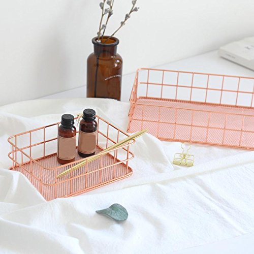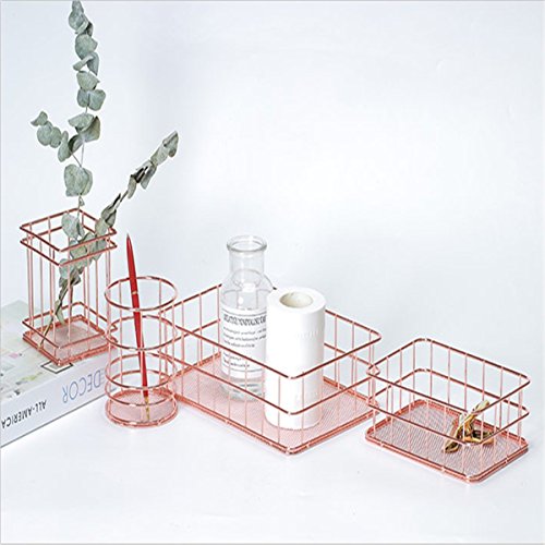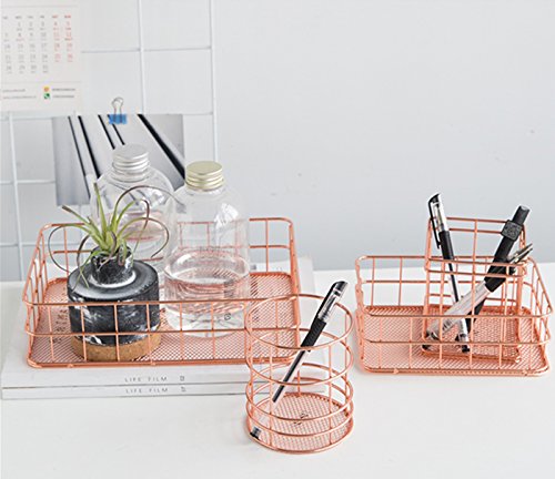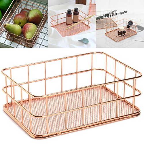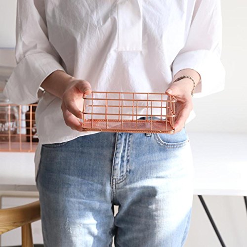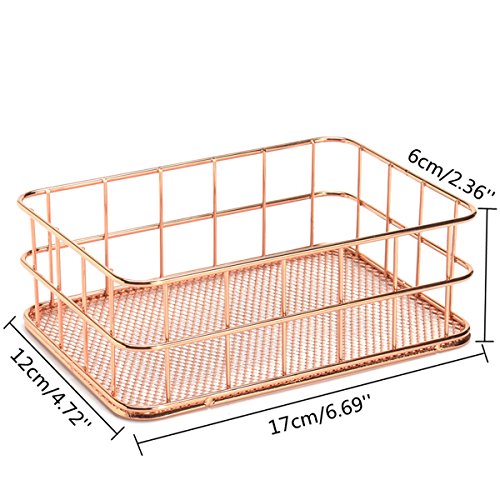 Caveen Metal Wire Mesh Basket Copper Rose Gold Basket For Office Bathroom Bedroom Essential Oil Storage Makeup Brushes Organizer Medium