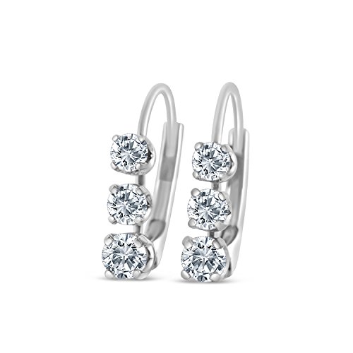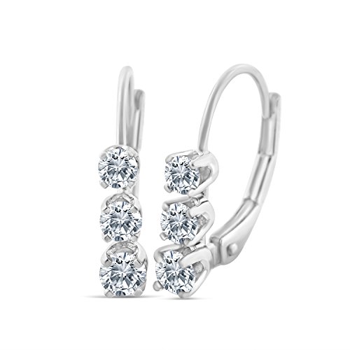 -. Title : IGI Certified 1/2 ctw Diamond Three Stone Earring in 14k White Gold (K-L, I2-I3)