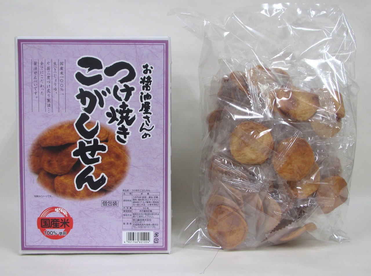 The product was finished to ease the size, 55 rice crackers made into individual packages were packed in a large bag.