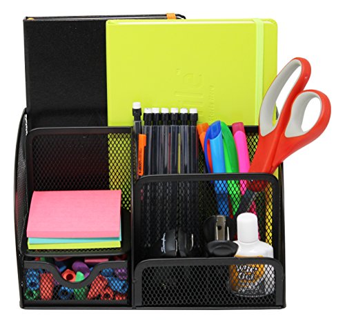 - IDEAL FOR HOME OR OFFICE - Whether You Need To Tidy Thing Up at Work, Home, The Kitchen, or School, This Supply Holder Will Do The Trick. The Ample Storage Makes It Ideal For Post-It Notes, Binder Clips, Paper Clips, Scissors, Markers/Highlighters/Pens/Pencils, Tape, Erasers, White Out, Folders, Notepads, And A Myriad of Other Office Supplies.