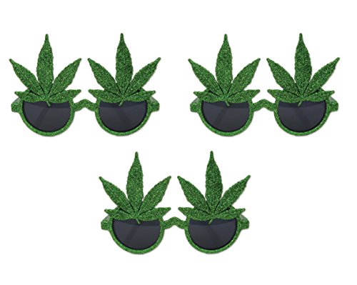 Beistle 60053 3 Piece Glittered Weed Glasses, Green