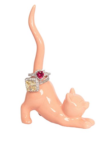 Cat Ring Holder, Cute Coral Ceramic Engagement and Wedding Ring Holder, Measures 2.75"W x 4.5"H x 1.5"D