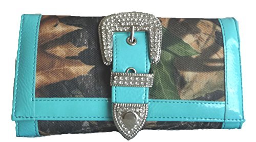 Product DescriptionCamouflage mossy oak print trifold wallet with rhinestone buckle. Removable checbook cover.0