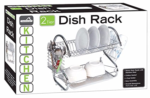 -. Brand : Euro-Ware -. Color : Stainless Steel -. EAN : 0715785490037 -. Feature : Euro-Ware 2 tier design Dish Rack / Heavy duty stainless steel construction / Easy to assemble and clean / Includes a cutlery basket and 6-cup holder / Dimensions 17.3" x 9.6" x 14" -. Label : Euro Ware -. Manufacturer : Euro Ware -. Model : EW1922 -. MPN : EW1922 -. PackageQuantity : 1 -. PartNumber : EW1922 -. ProductGroup : Kitchen -. ProductTypeName : KITCHEN -. Publisher : Euro Ware -. Studio : Euro Ware -. Title : Euro-Ware 2-Tier Heavy Duty Dish Rack, 16" -. UPC : 715785490037