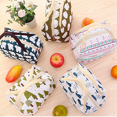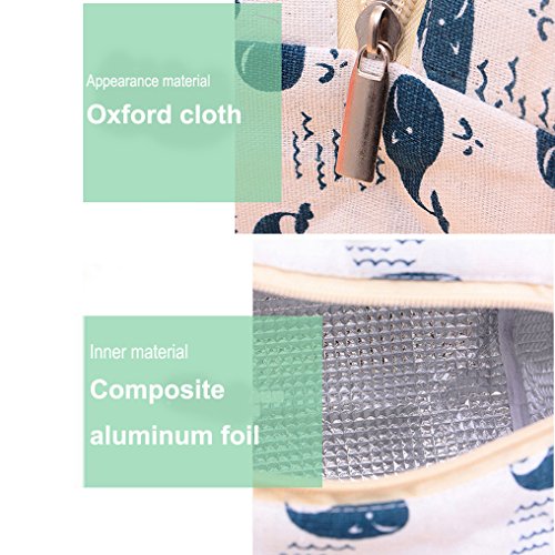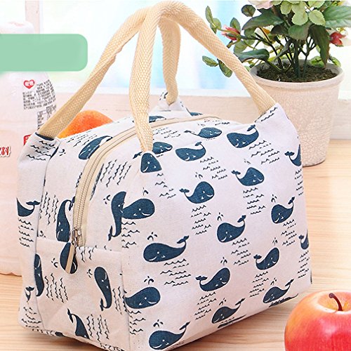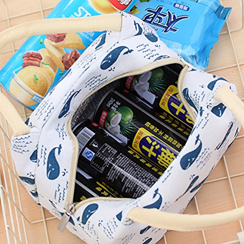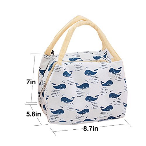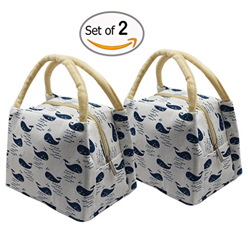 Canvas Reusable Insulated Lunch Bag 2pc Travel School Picnic with Zipper for Men, Women, Kids (Whale)