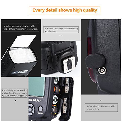 Features: •Manual Flash •S1,S2 Light Flashing Mode •Multi Flash •Manual Zoom Function •Voice Prompt •Compatible With Nikon,Canon Camera •Power Save Mode •Overheating Protection •Fast Speeding Call Back System