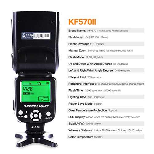 K&F Concept KF-570 II Specification: •Circuit design : Insulated Gate Bipolar Transistor(IGBT)