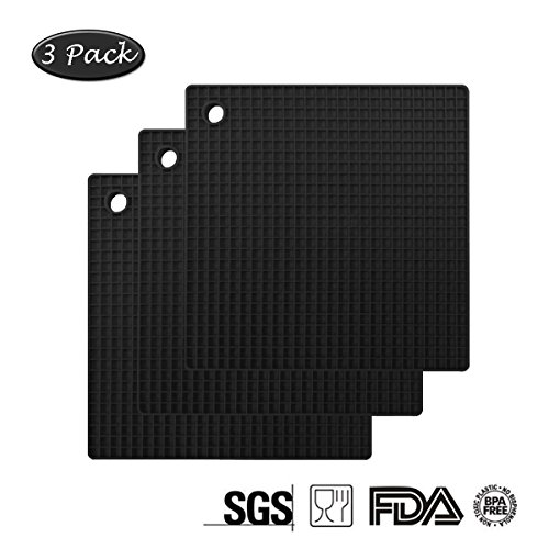 -- Multi-functional and Flexible: Our soft yet strong silicone heat resistant mats measure 6.8"x6.8"x0.3", and have various functionalities: used as hot holders, anti-heat mats, trivets, jar openers, spoon rests, non-slip mats or large coasters to protect hands or utensils from heating or scalding.