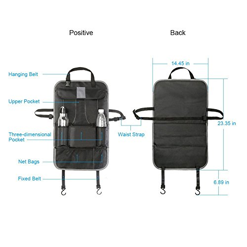 HEAVY DUTY MATERIAL-Our Car seat back organizer made of high density polyester, this material is very high quality, heavy duty, and durable.The most important point,it is very safe for children.