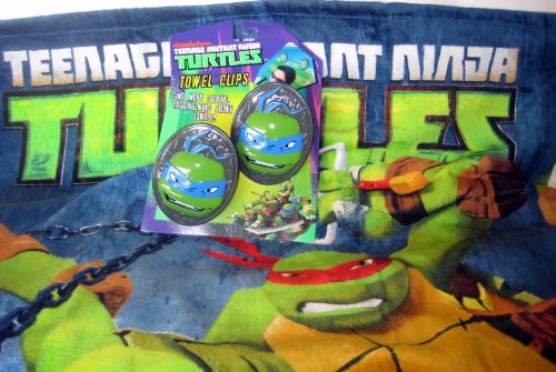 TOWEL CLIPS: No more falling, sagging, wind blown towels! Clip your beach towel to your beach chair and experience what it is to have your towel stay in place. Includes two clips featuring Leonardo. Use the clips to Ninja-ize any beach towel. Simply clip the towel in place, and voila! a Teenage Mutant Ninja Turtle ensemble!