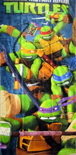BEACH TOWEL - 28 inch x 58 inch towel has all four of your favorite ninja heroes: Donatello, Raphael, Michelangelo and Leonardo. Towel is made from 100% cotton.