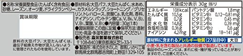 大豆パフ、大豆たんぱく、水あめ、砂糖、レーズン、オーツ麦、ドライクランベリー、カラメルシラップ、ショートニング/グリセリン、トレハロース、炭酸Ca、V.B6、V.B2、V.B1、葉酸、V.B12